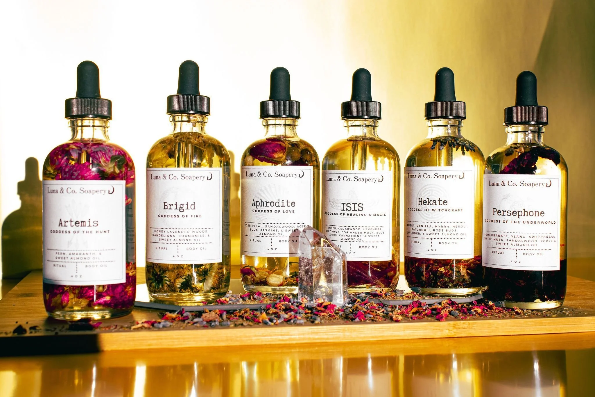 We ritually handcraft soaps, body oils, and perfumes using plant-based ingredients and aromatherapeutic blends made with intention and aligned with planetary energies, lunar phases, and seasonal cycles. We also host moon rituals, workshops, and witchy wellness events at our Babylon, NY storefront, helping our community explore spirituality, healing, and personal transformation.